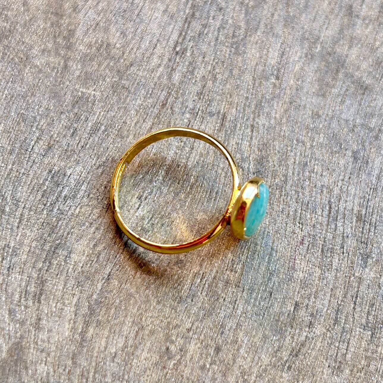 Anillo en Amazonita y Peltre con Baño de Oro de 18k. Ajustable.